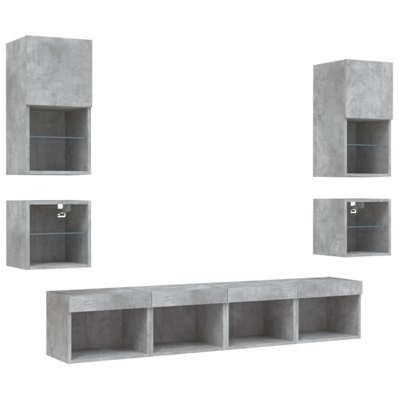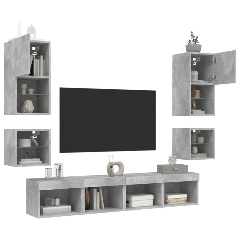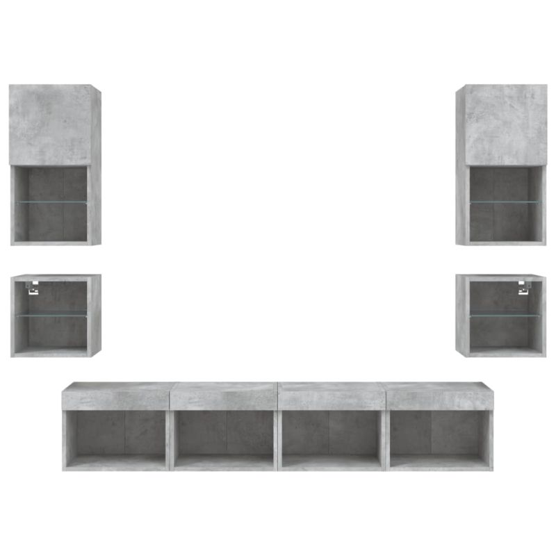ТВ стенни модули с LED, 8 части, бетонно сиви, инженерно дърво