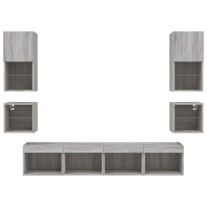 ТВ стенни модули с LED, 8 части, сив сонома, инженерно дърво