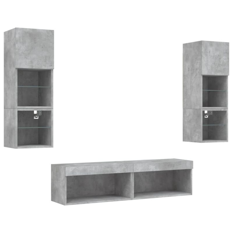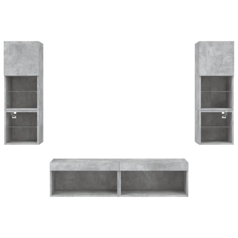 ТВ стенни модули с LED, 6 части, бетонно сиви, инженерно дърво