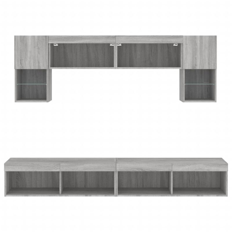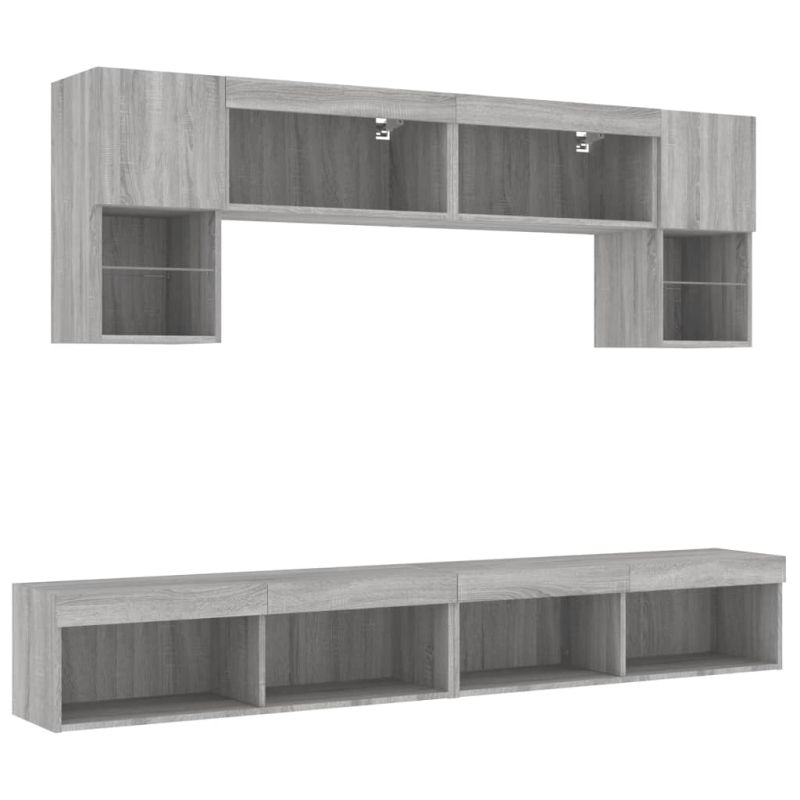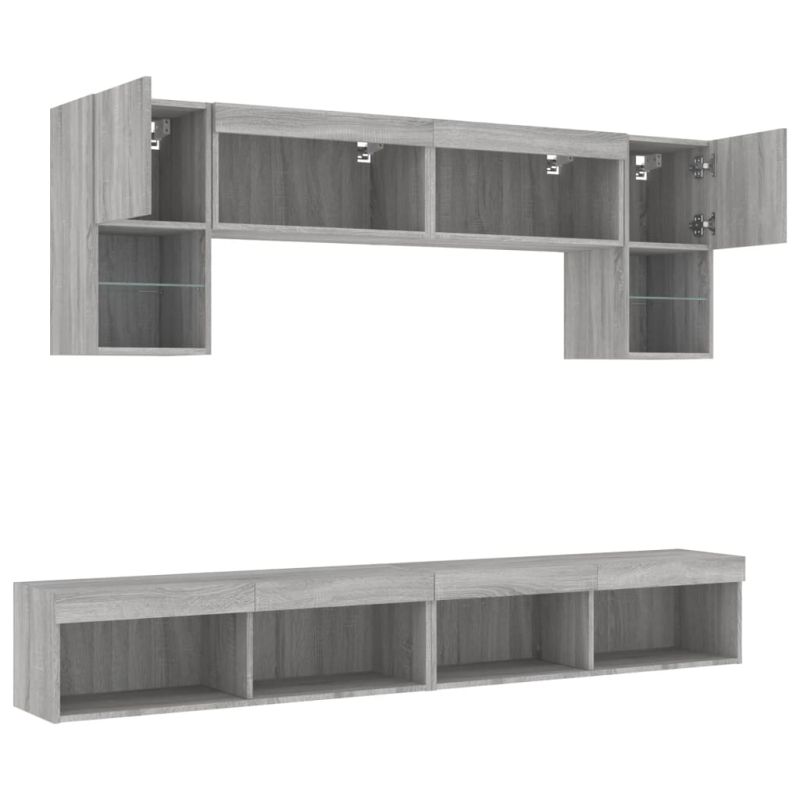 ТВ стенни модули с LED, 6 части, сив сонома, инженерно дърво