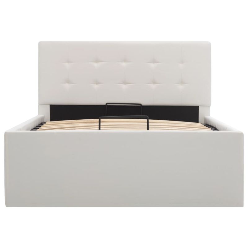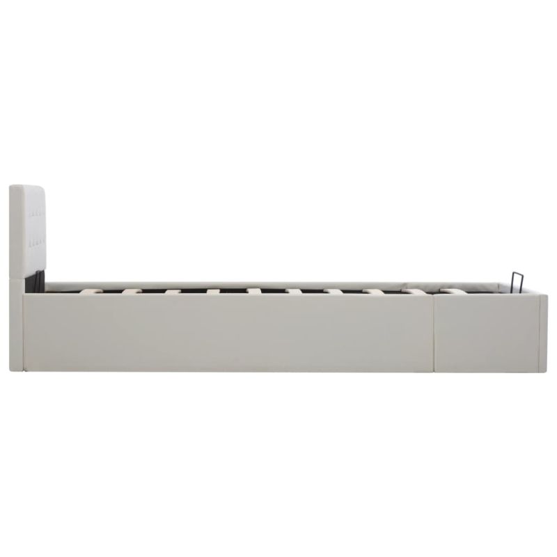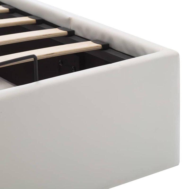 Легло с повдигащ механизъм, бяло, изкуствена кожа, 100x200 cм