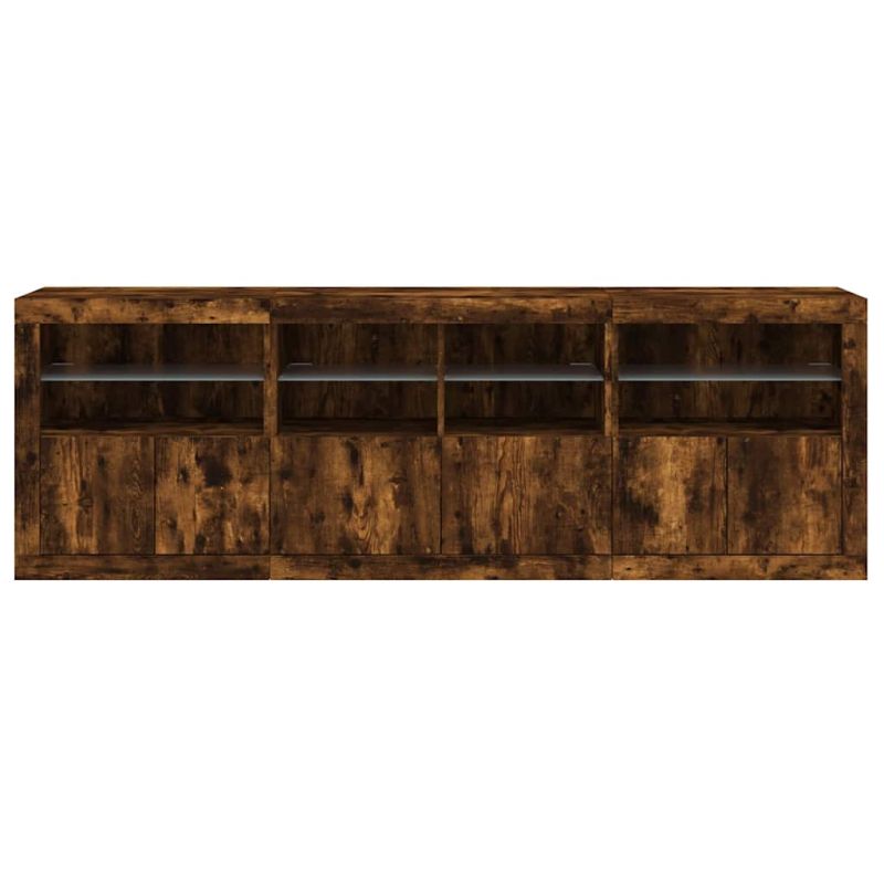 Сайдборд с LED светлини, oпушен дъб, 202x37x67 см