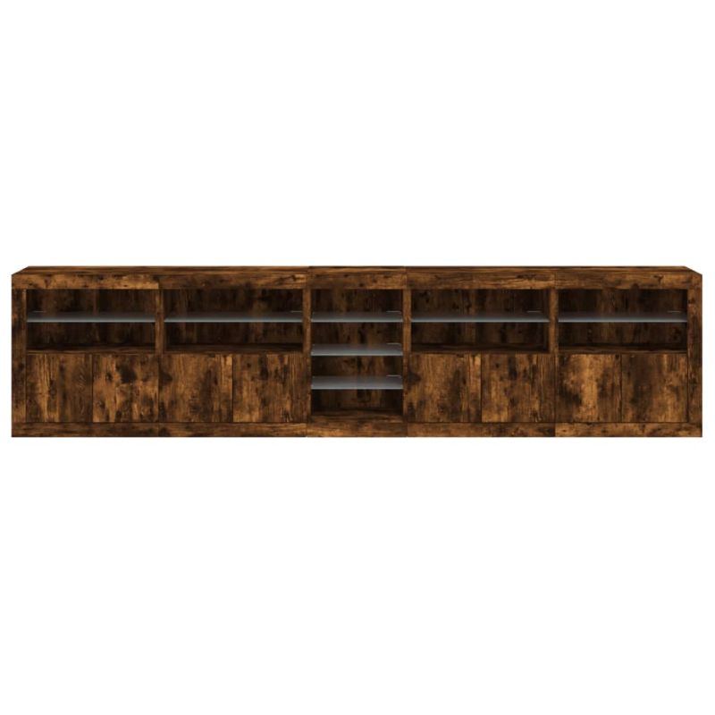 Сайдборд с LED светлини, oпушен дъб, 283x37x67 см