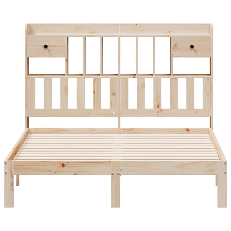 Легло с етажерка за книги, без матрак, 135x190 см, бор масив