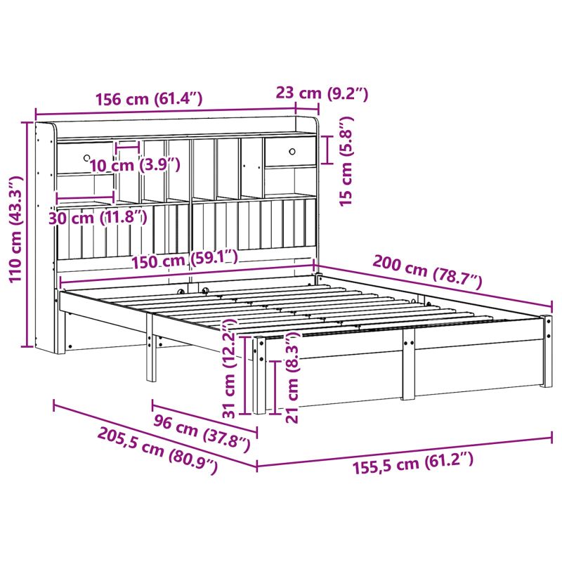 Рамка за легло с библиотека Восъчен Кафяв 200 x 150 cm