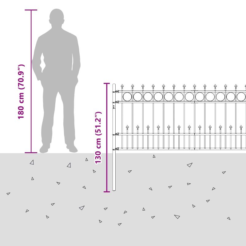 Оградата с модерен spike ring е елегантно и функционално решение за открито, перфектно комбиниращо простота и съвременен дизайн. Това правоъгълно решение за ограда е подходящо за градини, тераси или алеи, предоставяйки стил и сигурност. Със своята прахово боядисана стоманена конструкция, оградата не само изглежда добре, но е и стабилна и устойчива на атмосферни влияния. Идеален избор за имотите, които искат красиво, но функционално решение с минимални усилия за поддръжка. Издръжлива прахово боядисана стомана: Тази ограда е изработена от качествена стомана, покрита с прах, и предлага страхотно съчетание между стил и устойчивост. Праховото покритие предпазва от корозия и осигурява дълготрайност, спестявайки ви нужда от ремонт. Универсален интерлокинг дизайн: Панелите могат лесно да се свързват и регулират, предлагаща гъвкавост за различни нужди. По този начин оградата определя границите и подобрява сигурността на имота, осигурявайки спокойствие. Свойства, устойчиви на атмосферни условия: Оградата е проектирана да устоява на различни метеорологични условия, оставайки в отлично състояние и без необходимост от постоянно обслужване, което я прави надежден избор за открити пространства. Лесна поддръжка: Поддържането на оградата е лесно - просто я избърсвайте от време на време с влажна кърпа. Избягвайте агресивни химикали, така че да продължи да краси вашето пространство с минимални усилия. Лесен процес на сглобяване: Тази ограда предлага проста инсталация, нуждаеща се само от бормашина и метър за измерване. Сглобяването е бързо и удобно, независимо дали сте професионалист или хобист.