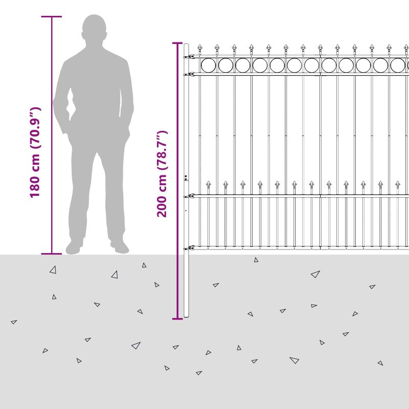 Оградата с модерен spike ring е елегантно и функционално решение за открито, перфектно комбиниращо простота и съвременен дизайн. Това правоъгълно решение за ограда е подходящо за градини, тераси или алеи, предоставяйки стил и сигурност. Със своята прахово боядисана стоманена конструкция, оградата не само изглежда добре, но е и стабилна и устойчива на атмосферни влияния. Идеален избор за имотите, които искат красиво, но функционално решение с минимални усилия за поддръжка. Издръжлива прахово боядисана стомана: Тази ограда е изработена от качествена стомана, покрита с прах, и предлага страхотно съчетание между стил и устойчивост. Праховото покритие предпазва от корозия и осигурява дълготрайност, спестявайки ви нужда от ремонт. Универсален интерлокинг дизайн: Панелите могат лесно да се свързват и регулират, предлагаща гъвкавост за различни нужди. По този начин оградата определя границите и подобрява сигурността на имота, осигурявайки спокойствие. Свойства, устойчиви на атмосферни условия: Оградата е проектирана да устоява на различни метеорологични условия, оставайки в отлично състояние и без необходимост от постоянно обслужване, което я прави надежден избор за открити пространства. Лесна поддръжка: Поддържането на оградата е лесно - просто я избърсвайте от време на време с влажна кърпа. Избягвайте агресивни химикали, така че да продължи да краси вашето пространство с минимални усилия. Лесен процес на сглобяване: Тази ограда предлага проста инсталация, нуждаеща се само от бормашина и метър за измерване. Сглобяването е бързо и удобно, независимо дали сте професионалист или хобист.