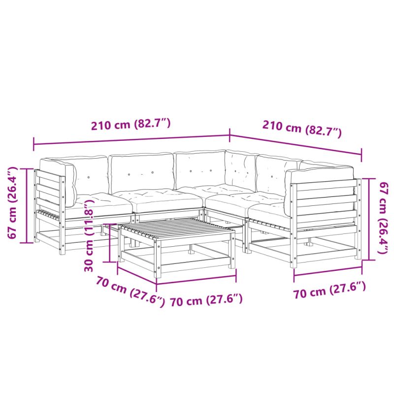 Градински комплект 6 части с възглавници импрегниран бор