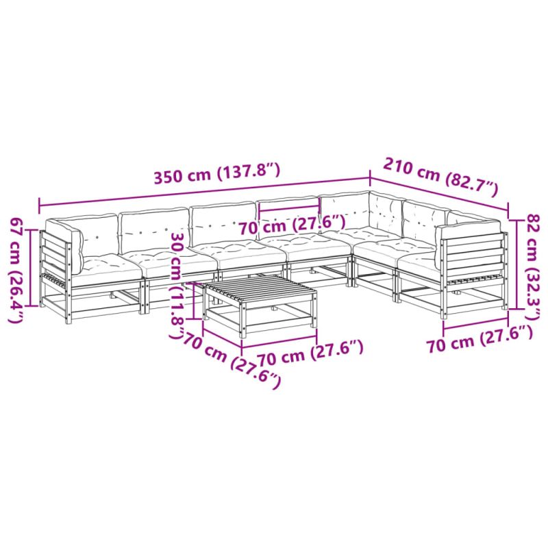 Градински комплект диван с възглавници 8 части, импрегниран бор