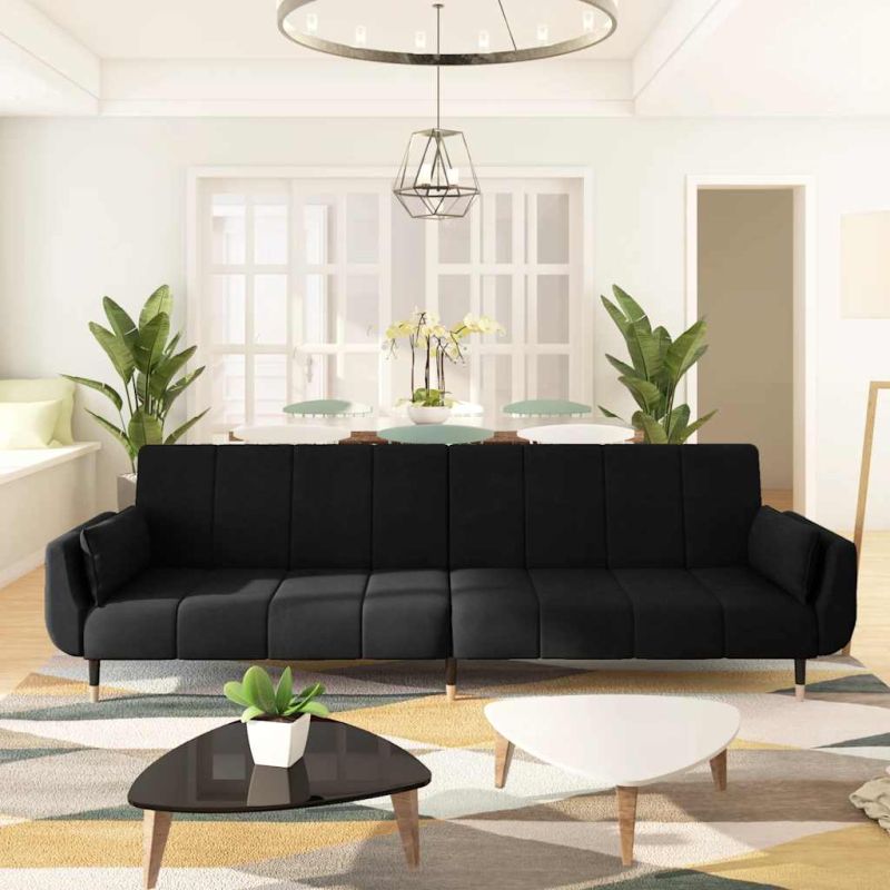 Начало Дом и градина Мебели Дивани 2-местно разтегателно канапе с две възглавници, черно, кадифе