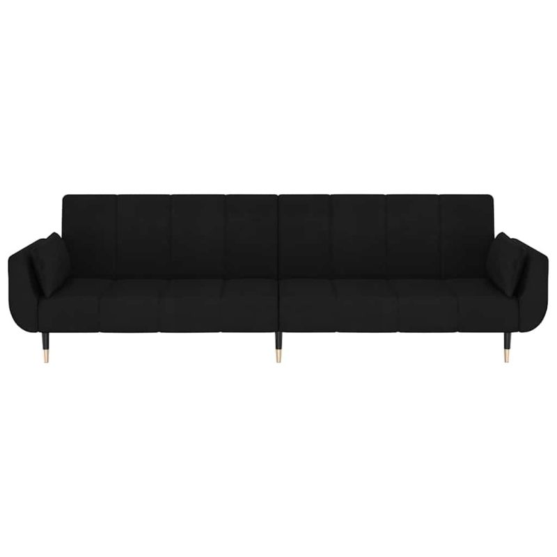 2-местно разтегателно канапе с две възглавници, черно, кадифе