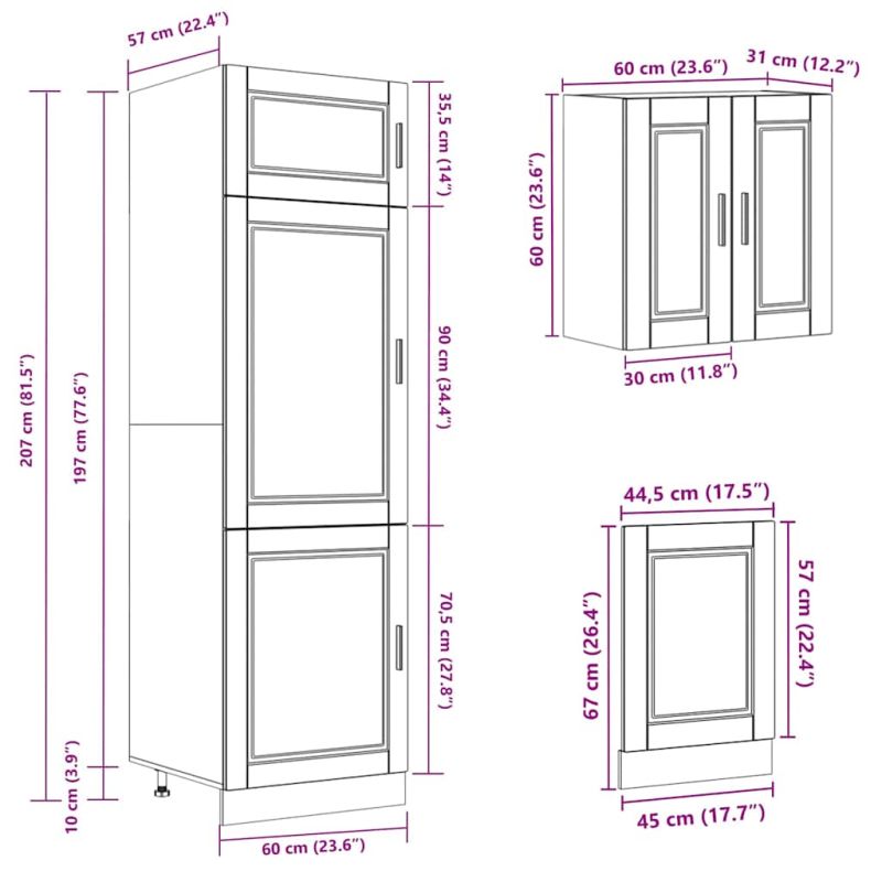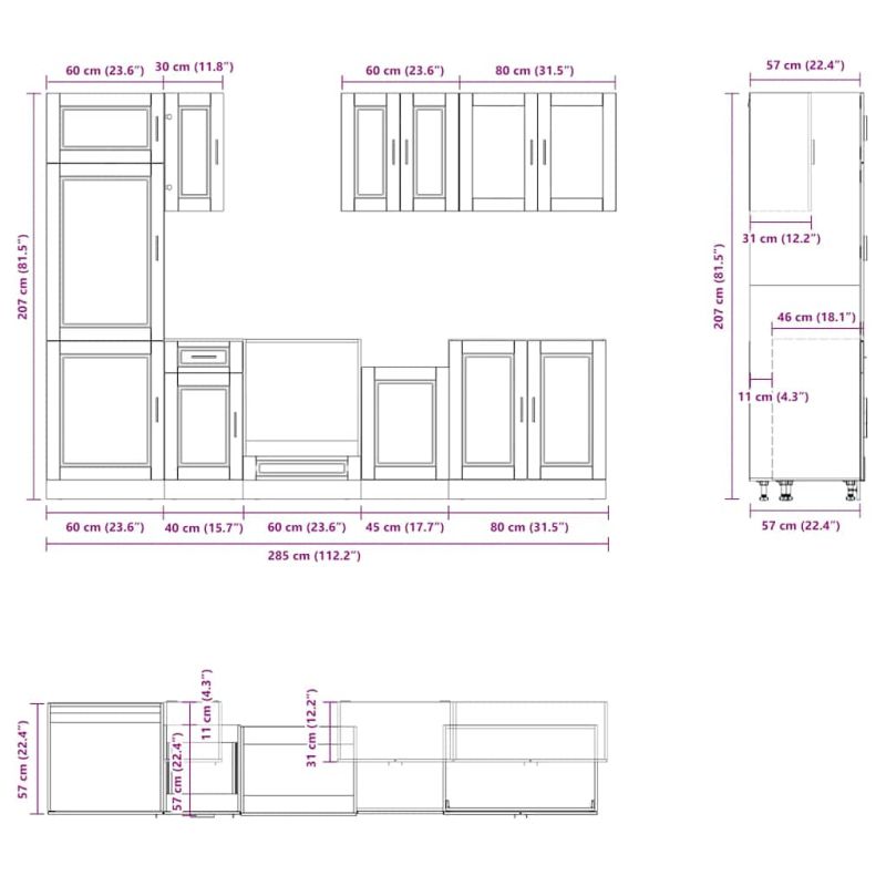 Този комплект кухненски шкафове от 8 части, с елегантния си дизайн, оптимизира кухненското ви пространство и осигурява достатъчно място за съхранение на вашите лични вещи! Стабилен и издръжлив материал: Инженерната дървесина е издръжлив и стабилен материал с гладка повърхност, устойчива на влага, деформация и цепене, което го прави надежден избор за различни проекти.Достатъчно място за съхранение: Комплектът кухненски шкафове има много отделения и предлага достатъчно място за съхранение на купи, чинии, тенджери и други кухненски уреди.Регулируеми крачета: Долните шкафове разполагат с регулируеми крачета, които могат да се регулират по височина, за да отговарят на оформлението на вашата кухня.Лесни за поддръжка: Благодарение на гладката си повърхност, тези кухненски шкафове се почистват лесно с влажна кърпа и изискват по-малко поддръжка. Предупреждение:Този продукт трябва да бъде обезопасен чрез монтиране на работен плот. Подходящ за имайте предвид:Винт(ове) и дюбели за вътрешната част на стената не са включени. Потърсете и използвайте винт(ове) и дюбели, подходящи за вашите стени. Ако не сте сигурни, потърсете професионален съвет. Прочетете и следвайте внимателно всяка стъпка от инструкциите.Плотът, мивката и смесителят не са включени в доставката.