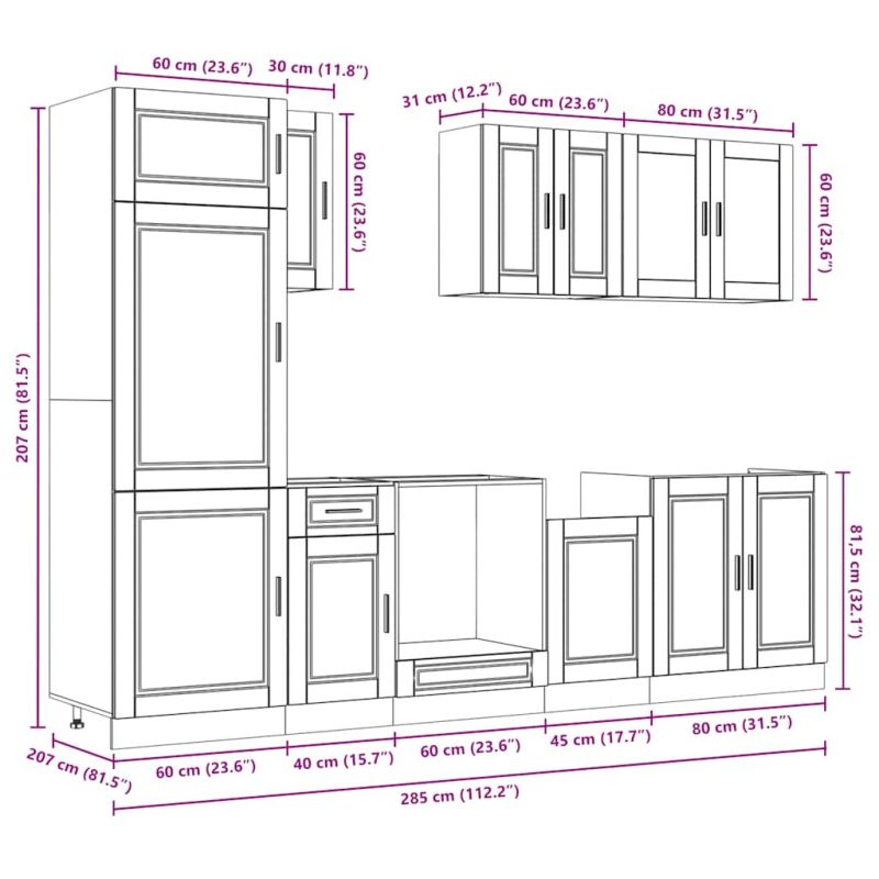 Комплект кухненски шкафове от 8 части Kalmar, инженерно дърво