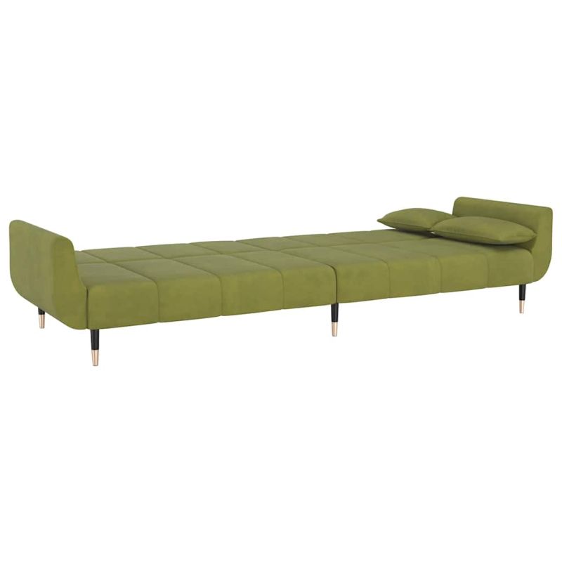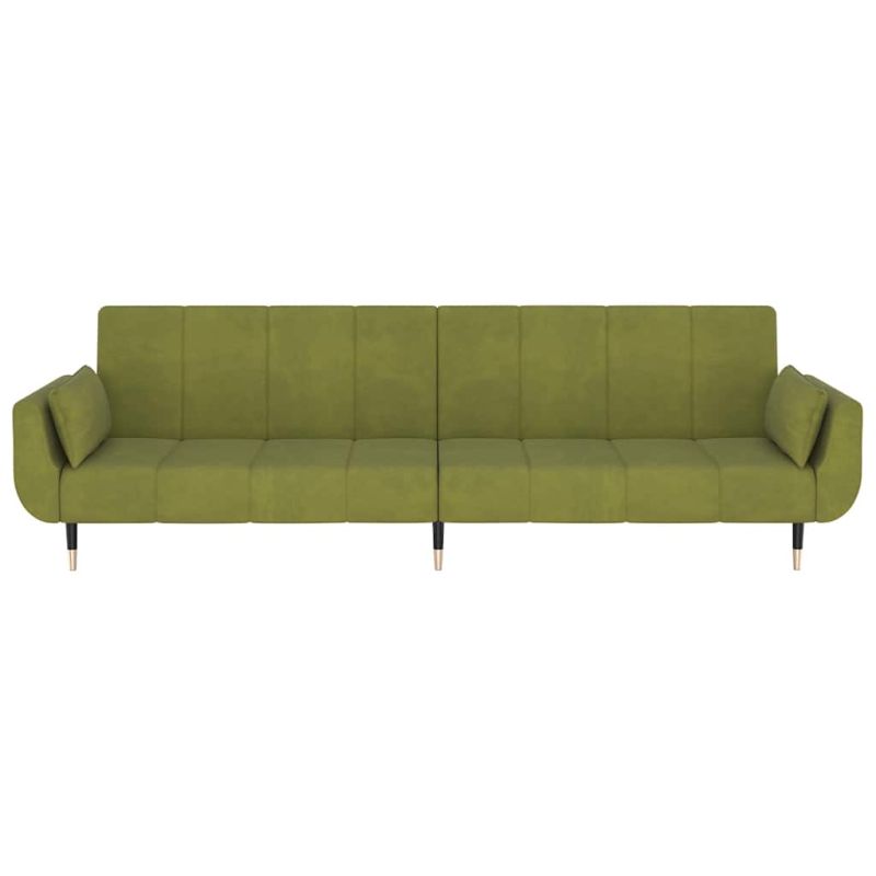 2-местно разтегателно канапе 2 възглавници светлозелено кадифе