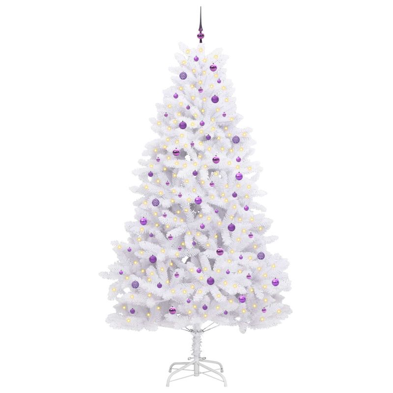 Изкуствено коледно дърво с хингед Бяло 270 cm PVC и стомана