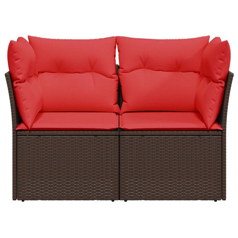 Градински диван с възглавници, двуместен, кафяв, полиратан