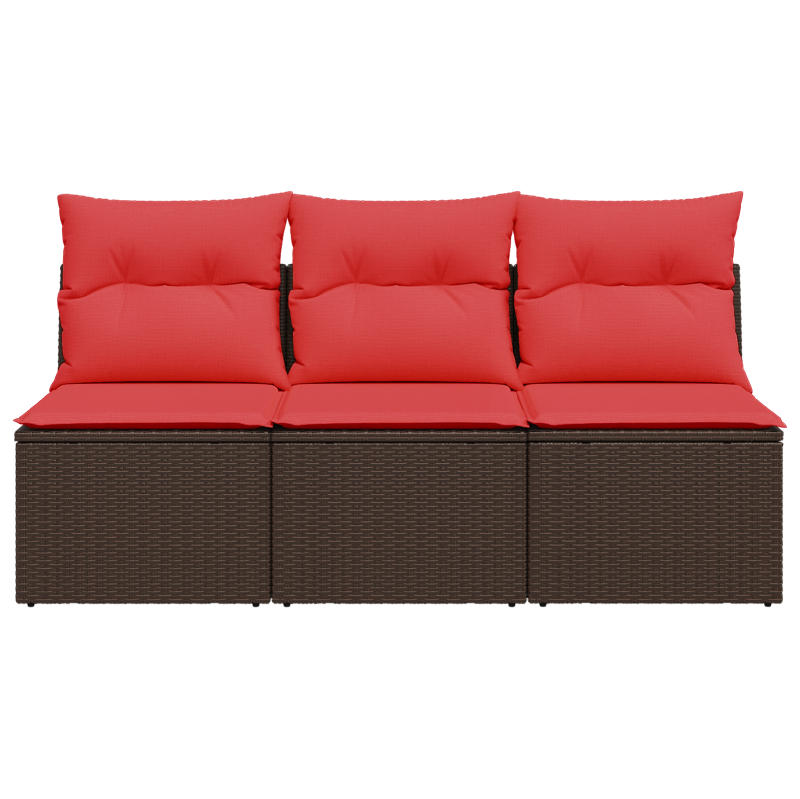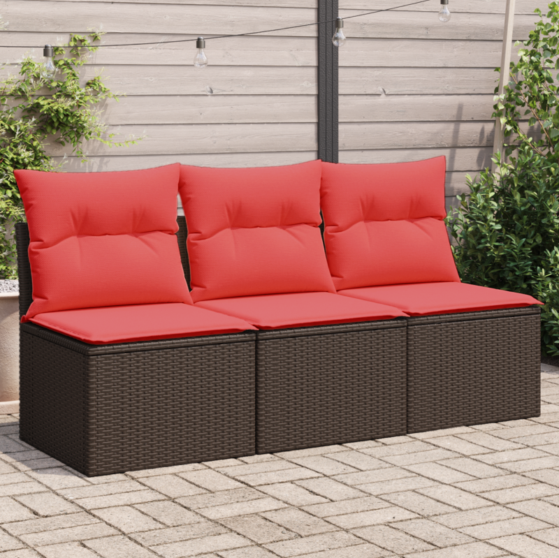Отпуснете се и се насладете на открито в този удобен градински диван за 3 души! Издръжлив материал: PE ратанът, известен още като полиратан, е здрав, лесен за поддръжка синтетичен материал, който прилича на естествен ратан. Той е лек, лесен за почистване и често се използва за градински мебели поради своята издръжливост и устойчивост на атмосферни влияния.Функция за съхранение с водоустойчива чанта: Всяка градинска седалка разполага с място за съхранение под седалката, допълнено с водоустойчива чанта за съхранение на възглавници, играчки и други предмети. Вътрешните чанти имат горен капак и могат да бъдат здраво закрепени към седалките с кукички за допълнителна стабилност.Комфортно седене: Тази градински мебел, оборудвана с дебело подплатени възглавници, предлага комфортно седене.Свалящ се и перещ се калъф: Тези възглавници за седалки имат свалящи се калъфи за лесно пране и поддръжка.Модулен дизайн: Този комплект градински мебели има модулен дизайн, което го прави напълно гъвкав и лесен за преместване, така че можете да създадете персонализирана подредба на градински мебели. Полезно е да знаете:За да сте сигурни, че вашите градински мебели ще останат красиви, препоръчваме да ги защитите с водоустойчив калъф.