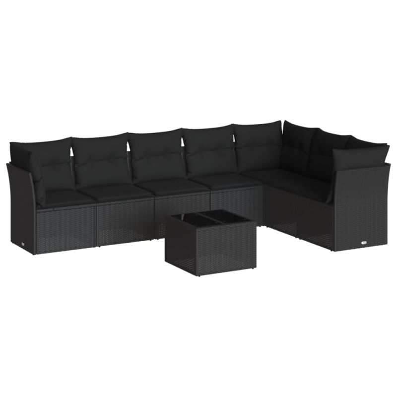 Градински комплект диван с възглавници 8 части черен полиратан