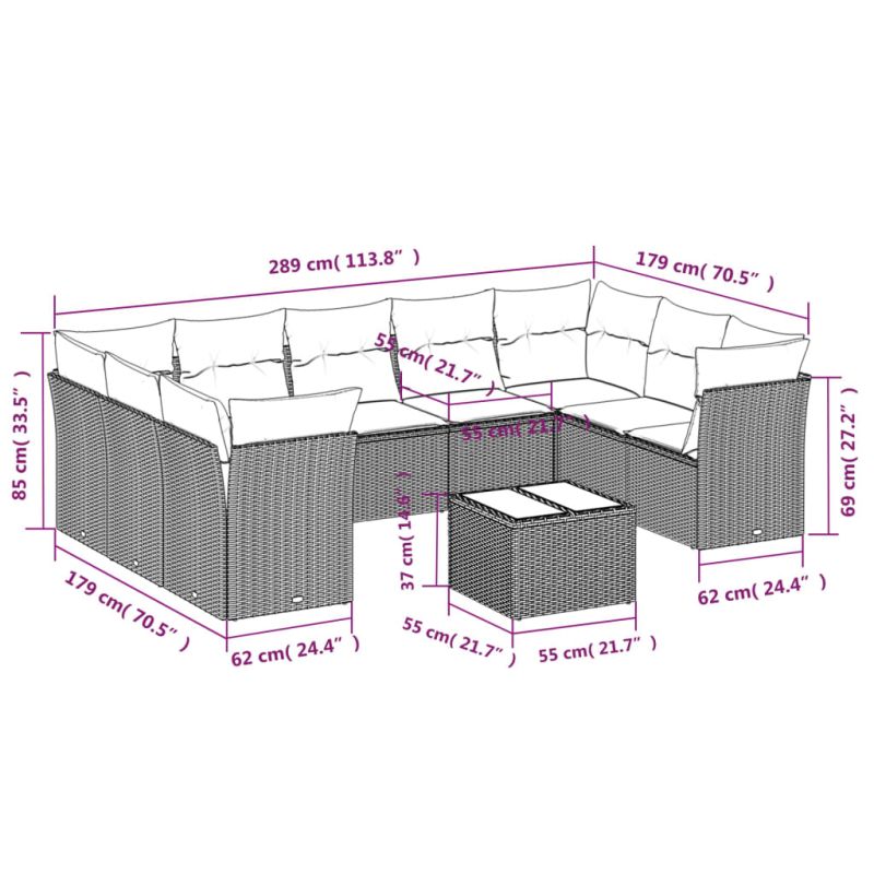 Градински комплект диван с възглавници 10 части черен полиратан