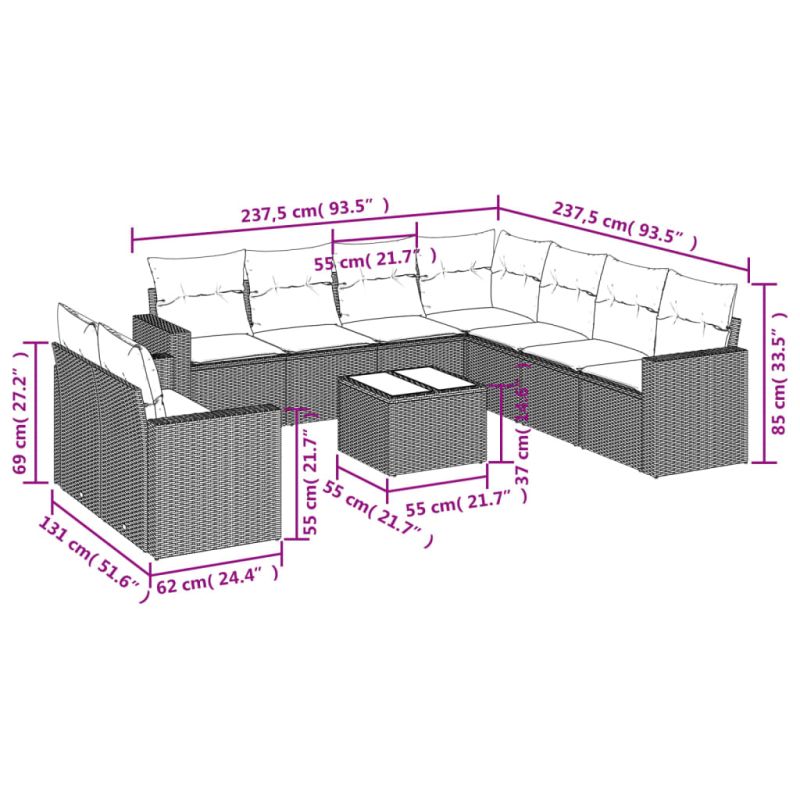 Начало Дом и градина Мебели Външни мебели Външно обзавеждане Елементи за градински секционни дивани Градински комплект диван с възглавници 10 части черен полиратан
