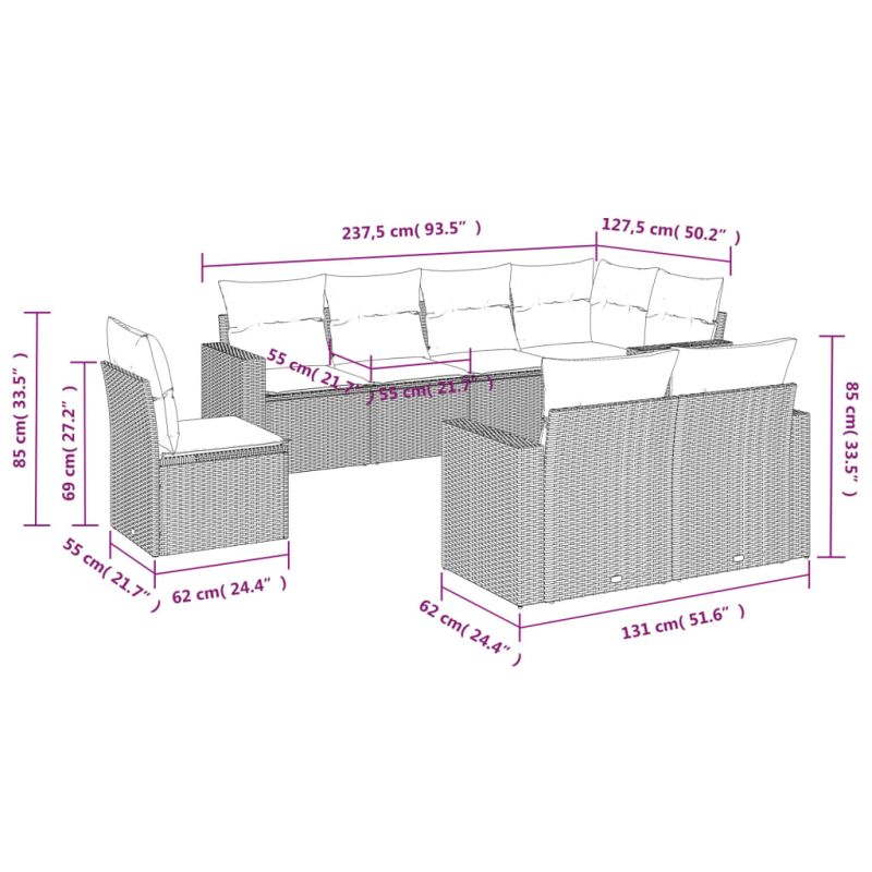 Градински комплект диван с възглавници 8 части черен полиратан
