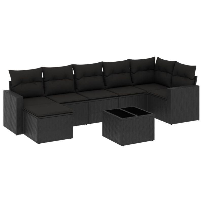 Градински комплект диван с възглавници 8 части черен полиратан