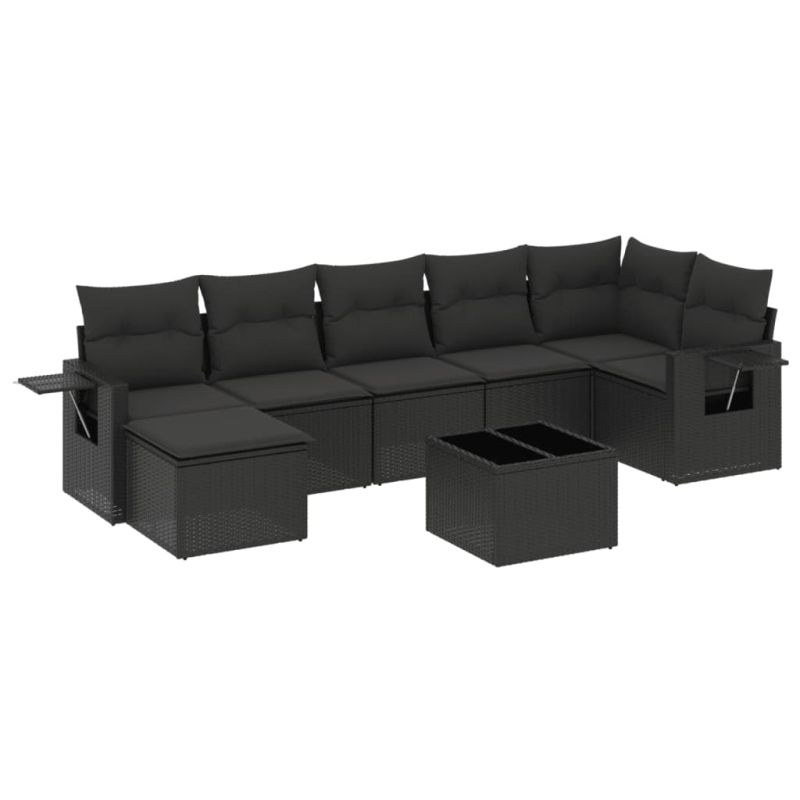 Градински комплект диван с възглавници 8 части черен полиратан