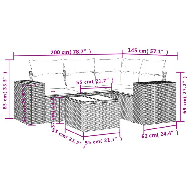 Този градински диван е идеалното допълнение към вашия заден двор, тераса или вътрешен двор, осигурявайки удобно и привлекателно пространство за разговори със семейството и приятелите или просто за почивка и забавление на открито. Издръжлив материал: PE ратан, известен също като полиратан, е здрав синтетичен материал с малко необходима поддръжка, който прилича на естествен ратан. Той е лек, лесен за почистване и често се използва за външни мебели поради своята издръжливост и устойчивост на атмосферни влияния.Функция за съхранение с устойчива на вода чанта: Градинската мебел разполага с място за съхранение под седалката, допълнено с устойчива на вода чанта за съхранение на възглавници, играчки и други предмети. Вътрешната чанта може да бъде здраво закрепена към външната мебел със закопчалки за допълнителна стабилност.Стъклен плот: Плотът на външната маса е изработен от здраво и издръжливо закалено стъкло, което улеснява почистването с влажна кърпа и добавя нотка елегантност към вашето външно пространство.Калъф, който може да се сваля и може да се пере: Тези възглавници за седалки имат подвижни калъфи за лесно пране и поддръжка.Модулен дизайн: Този комплект външни мебели има модулен дизайн, което го прави напълно гъвкав и лесен за преместване, така че можете да създадете персонализирана подредба на външни мебели. Добре е да се знае:За да сте сигурни, че вашите външни мебели ще останат красиви, ви препоръчваме да ги защитите с водоустойчиво покривало.