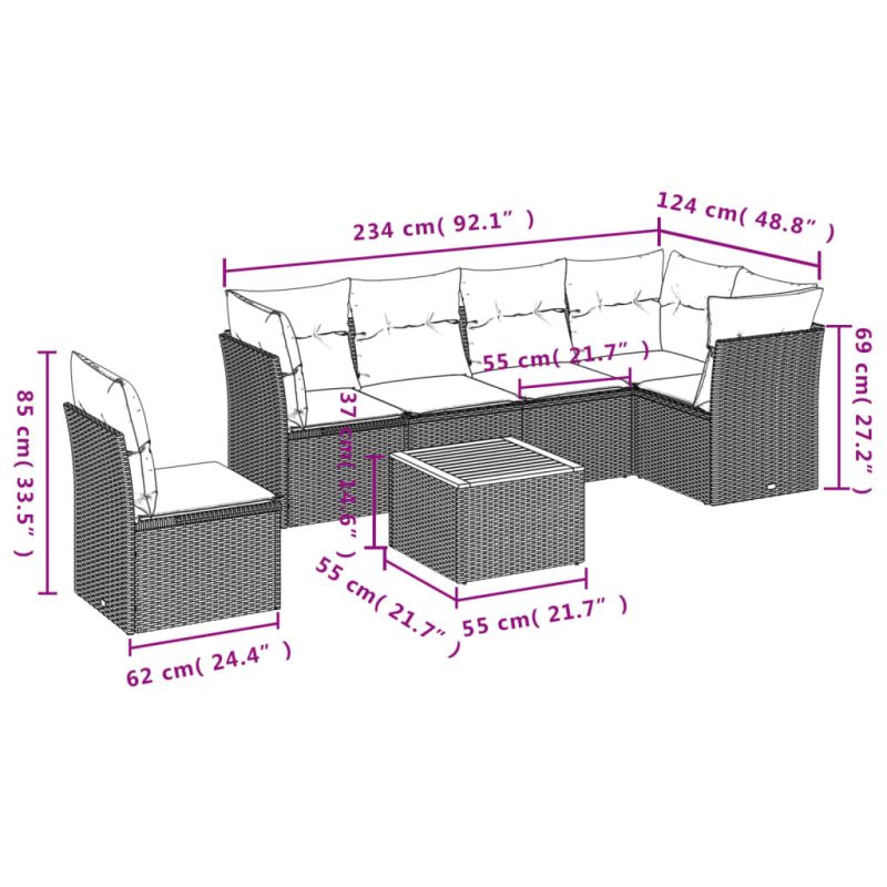 Градински комплект диван с възглавници 7 части черен полиратан