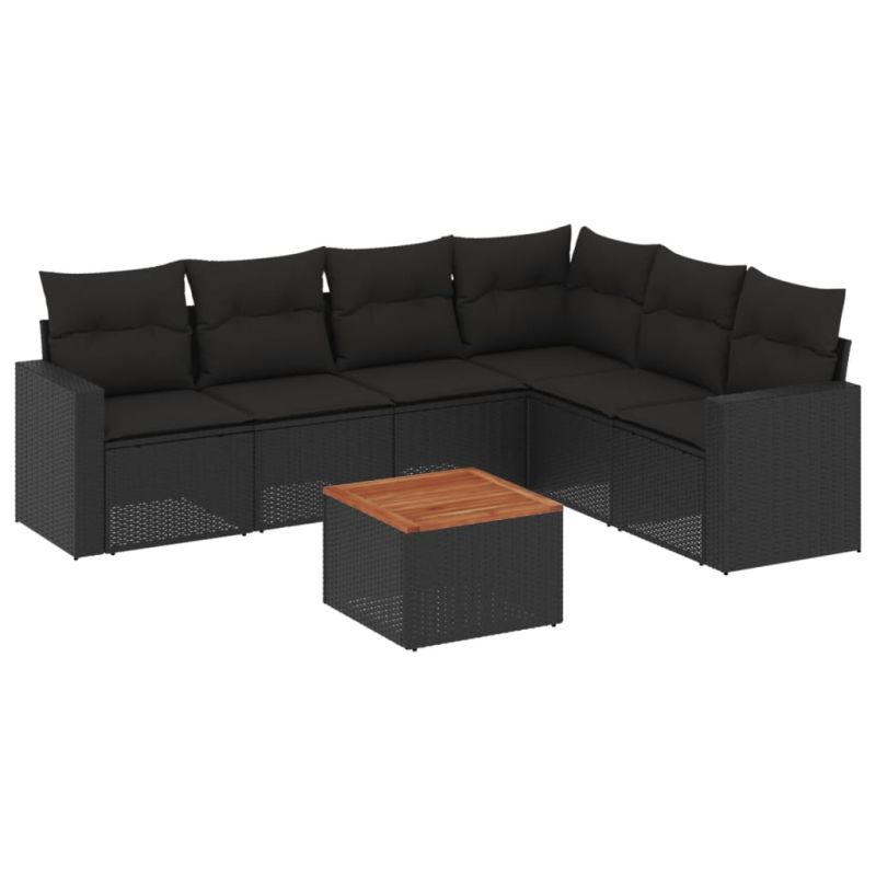Градински комплект диван с възглавници 7 части черен полиратан