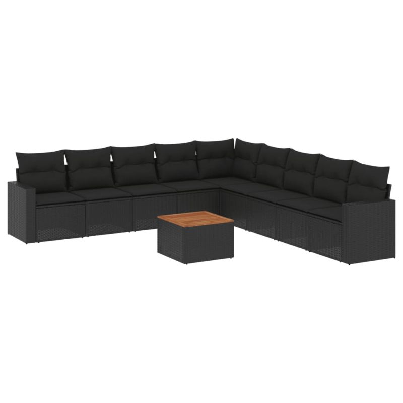 Градински комплект диван с възглавници 10 части черен полиратан