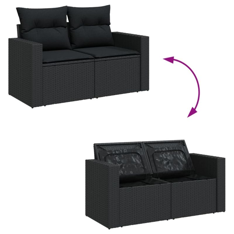 Градински комплект диван с възглавници 9 части черен полиратан