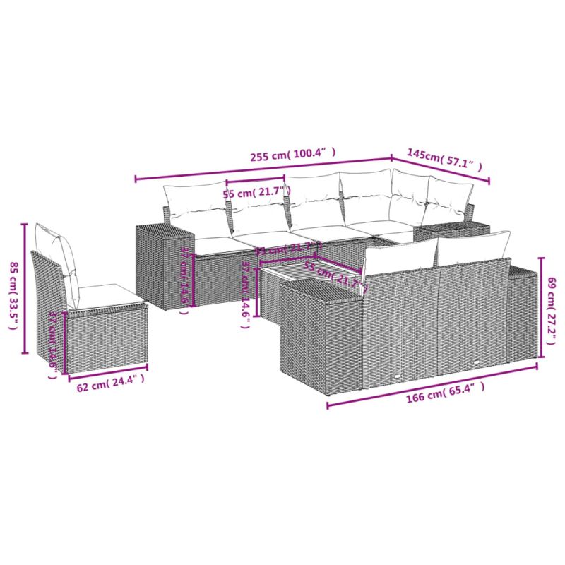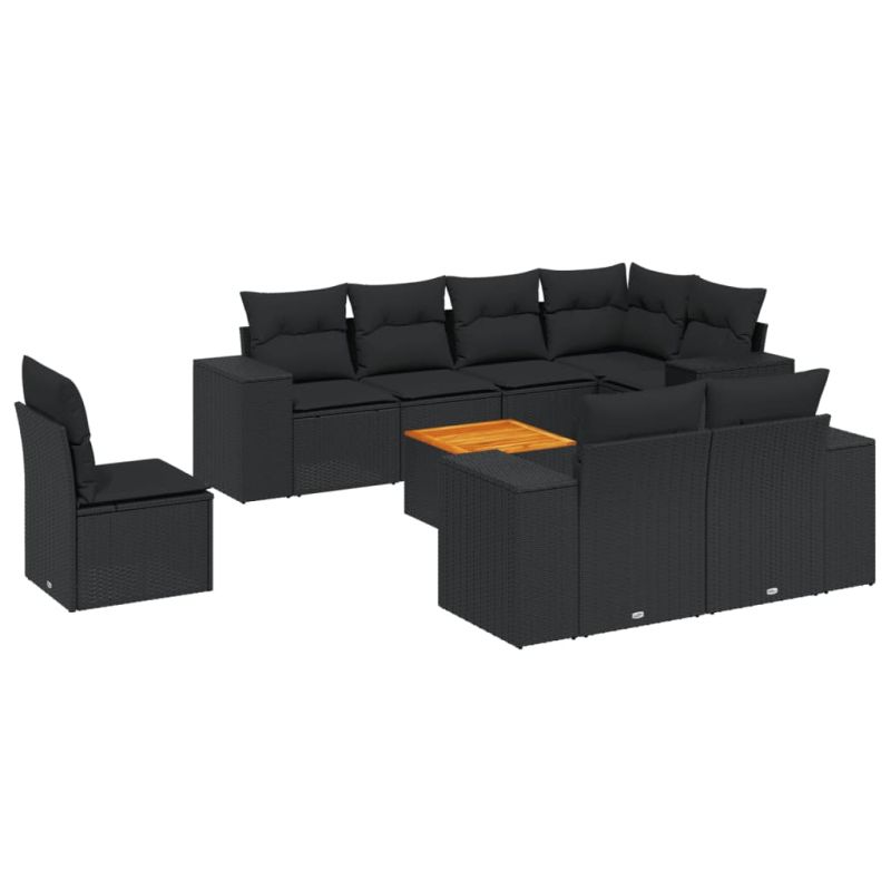 Градински комплект диван с възглавници 9 части черен полиратан