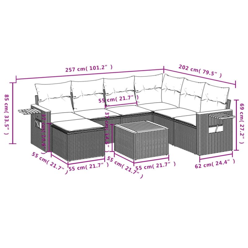 Този градински диван е идеалното допълнение към вашия заден двор, тераса или вътрешен двор, осигурявайки удобно и привлекателно пространство за разговори със семейството и приятелите или просто за почивка и забавление на открито. Издръжлив материал: PE ратан, известен също като полиратан, е здрав синтетичен материал с малко необходима поддръжка, който прилича на естествен ратан. Той е лек, лесен за почистване и често се използва за външни мебели поради своята издръжливост и устойчивост на атмосферни влияния.Функция за съхранение с устойчива на вода чанта: Градинската мебел разполага с място за съхранение под седалката, допълнено с устойчива на вода чанта за съхранение на възглавници, играчки и други предмети. Вътрешната чанта може да бъде здраво закрепена към външната мебел със закопчалки за допълнителна стабилност.Удобна странична масичка: Тази външна мебел разполага със сгъваема странична масичка с газова пружина на подлакътниците, осигуряваща удобно място, за да държите най-важните неща леснодостъпни.Калъф, който може да се сваля и може да се пере: Тези възглавници за седалки имат подвижни калъфи за лесно пране и поддръжка.Модулен дизайн: Този комплект външни мебели има модулен дизайн, което го прави напълно гъвкав и лесен за преместване, така че можете да създадете персонализирана подредба на външни мебели. Добре е да се знае:За да сте сигурни, че вашите външни мебели ще останат красиви, ви препоръчваме да ги защитите с водоустойчиво покривало.