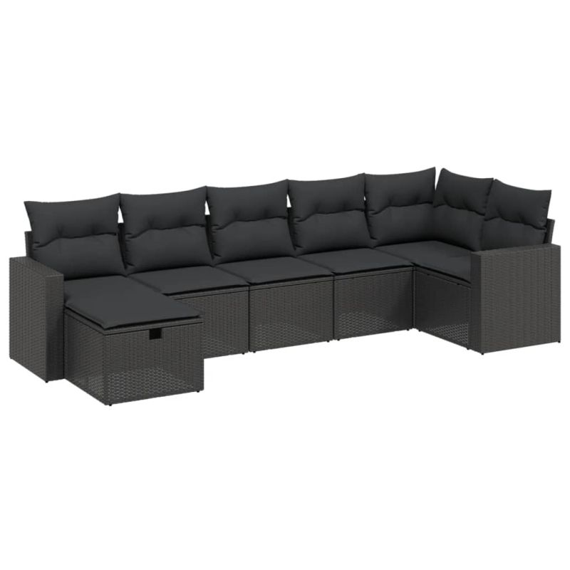 Градински комплект диван с възглавници 7 части черен полиратан