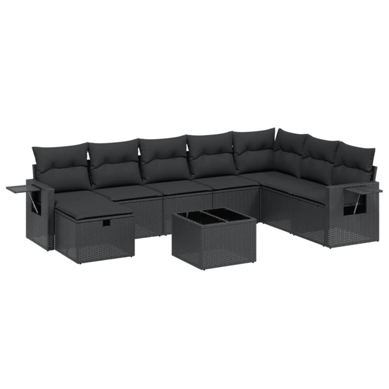 Градински комплект диван с възглавници 9 части черен полиратан
