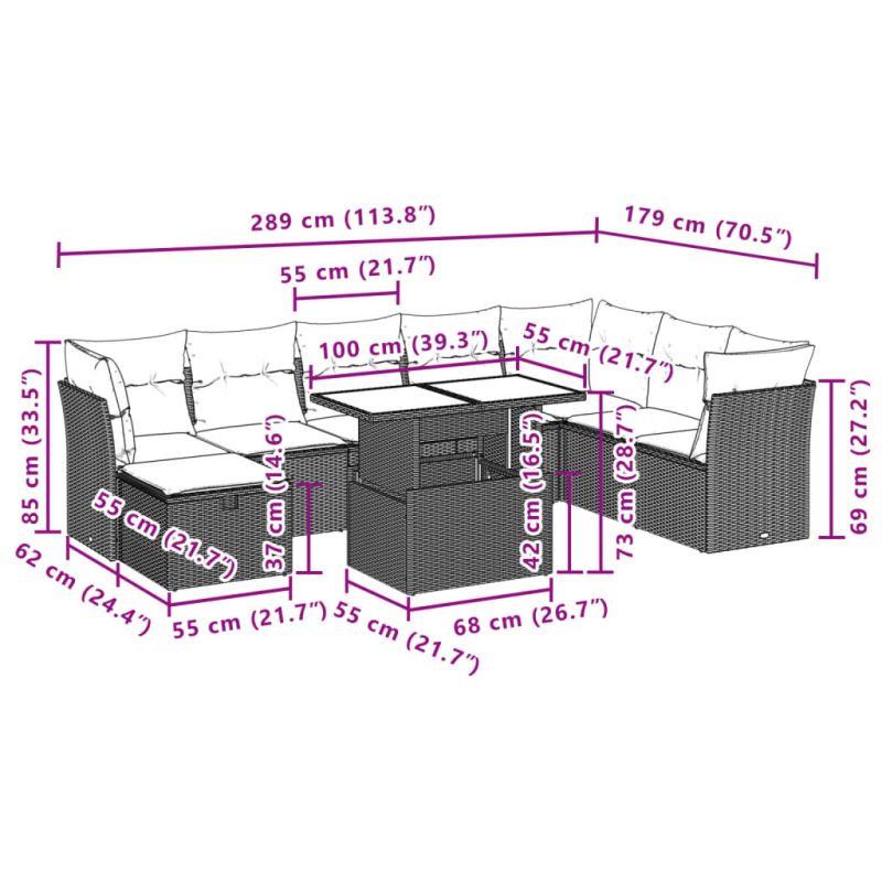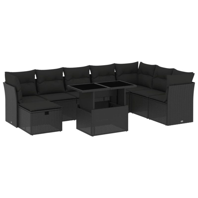 Начало Дом и градина Мебели Външни мебели Комплекти градински мебели Градински комплект диван с възглавници 9 части черен полиратан