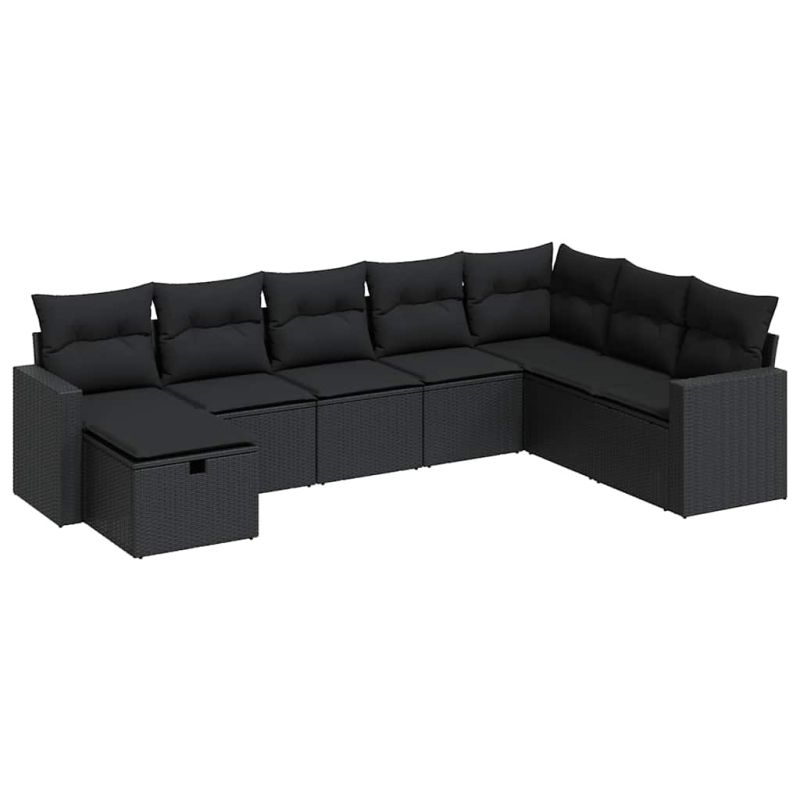 Градински комплект диван с възглавници 8 части черен полиратан