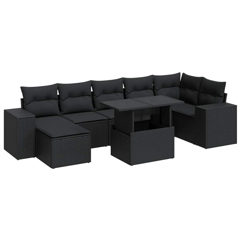 Начало Дом и градина Мебели Външни мебели Комплекти градински мебели Градински комплект диван с възглавници 8 части черен полиратан