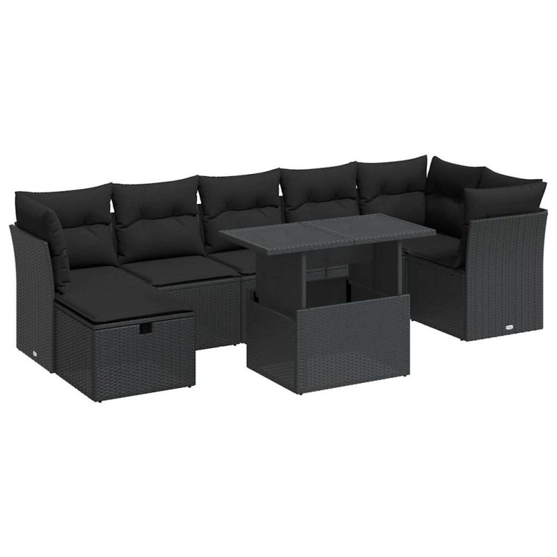 Градински комплект диван с възглавници 8 части черен полиратан