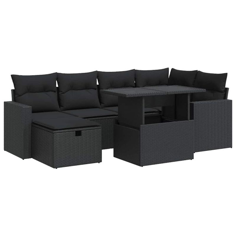 Градински комплект диван с възглавници 7 части черен полиратан