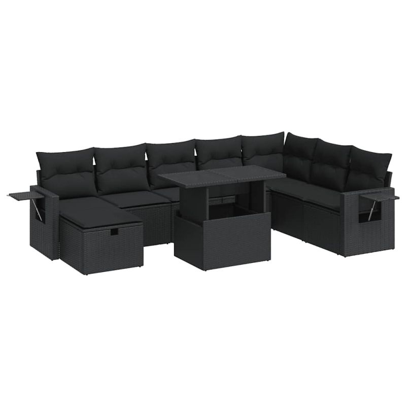 Градински комплект диван с възглавници 9 части черен полиратан