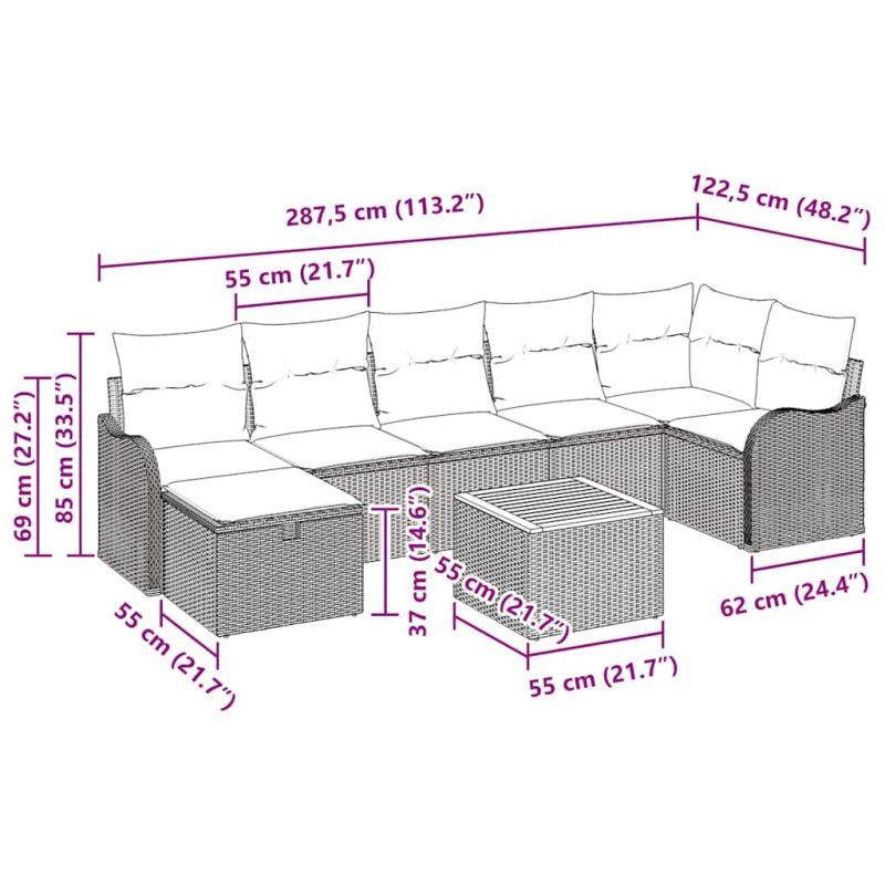 Градински Софа Комплект с възглавница 8 pcs Черно полиратан