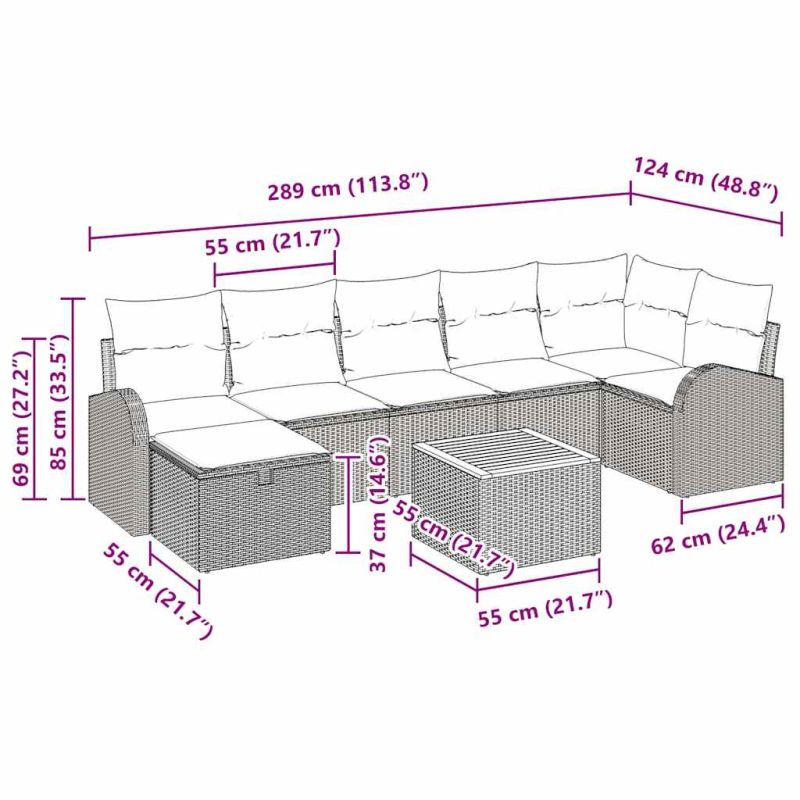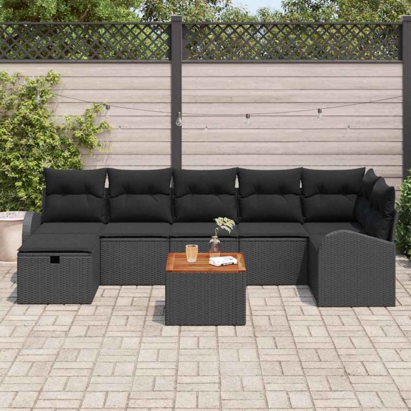 Градински Софа Комплект с възглавница 8 pcs Черно полиратан