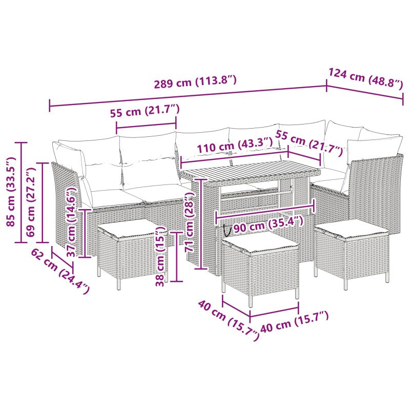 Градински Софа Комплект с възглавница 10 pcs Черно