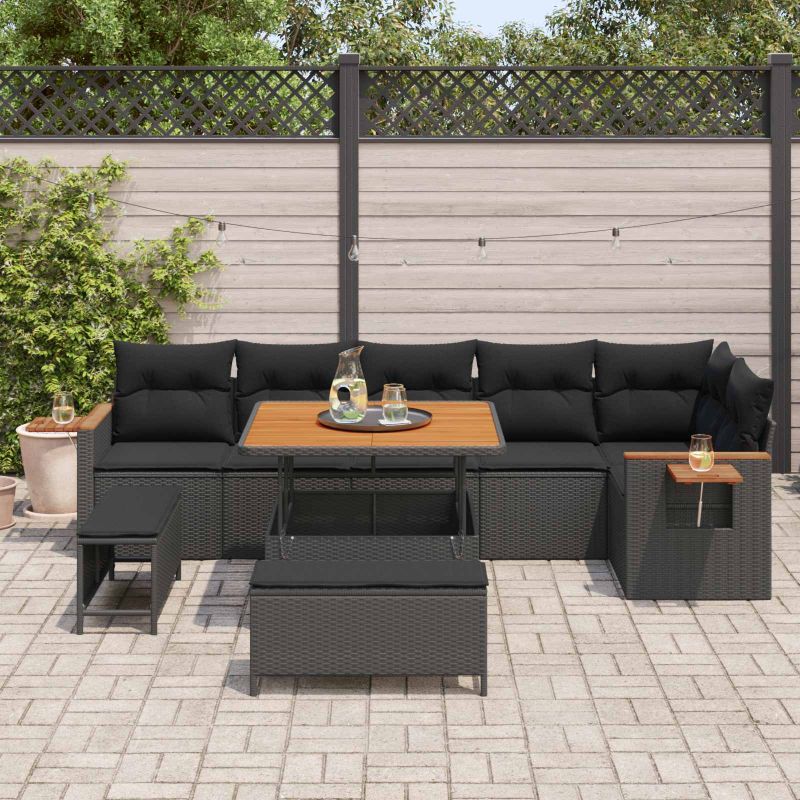 Градински Софа Комплект с възглавница 11 pcs Черно полиратан