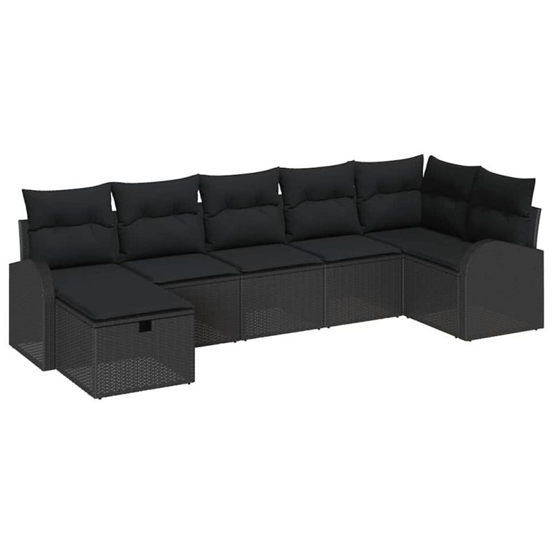Градински Софа Комплект с възглавница 7 pcs Черно полиратан