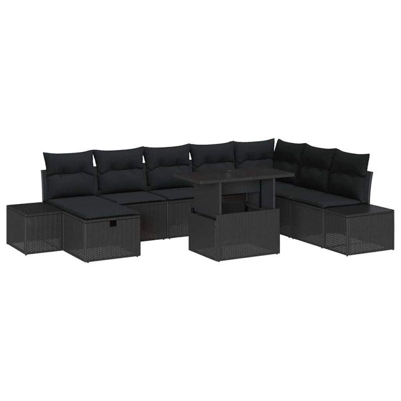 Градински Софа Комплект 11 pcs Черно Полиратан