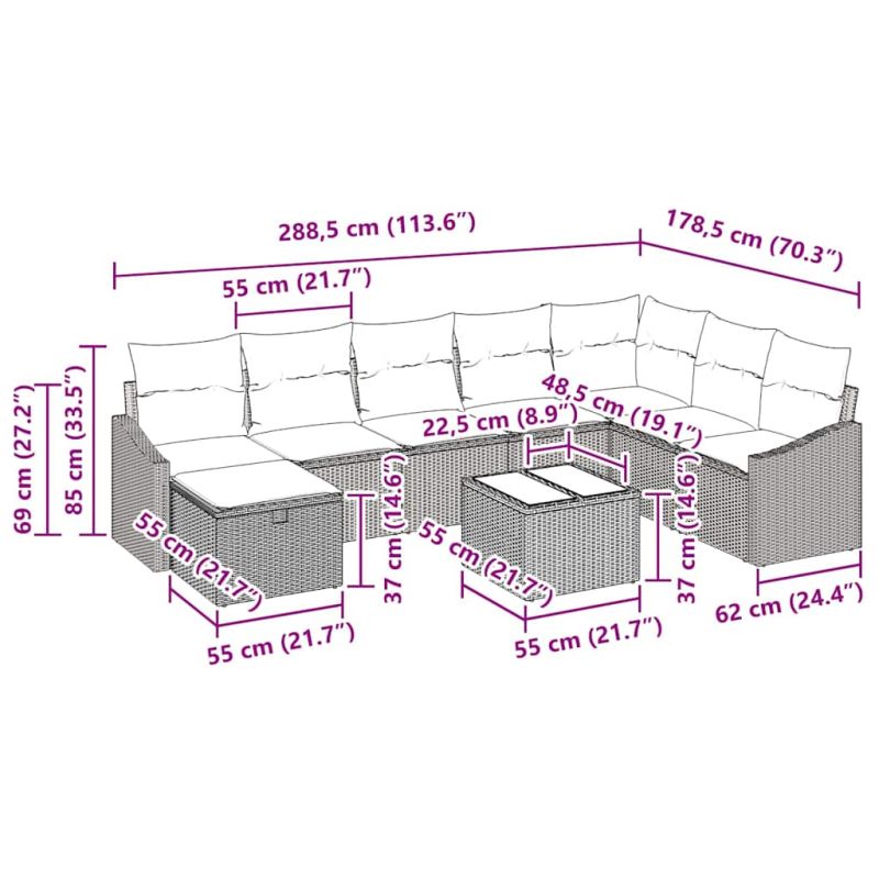 Градински Софа Комплект с възглавница 9 pcs Черно Полиратан