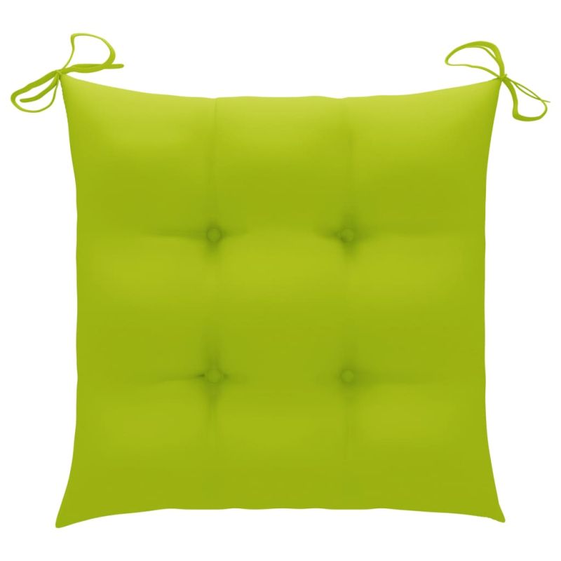 Градински столове, 4 бр, с яркозелени възглавници, тик масив